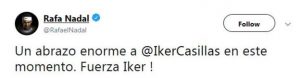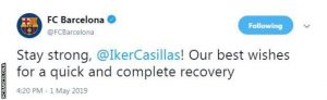 또한 외신은 카시야스의 전 소속팀 레알 마드리드의 선수들과 스페인의 테니스 선수인 라파엘 나달, 그리고 레알 마드리드의 라이벌 구단인 FC바르셀로나도 카시야스의 쾌유를 바랐다고 전했다.