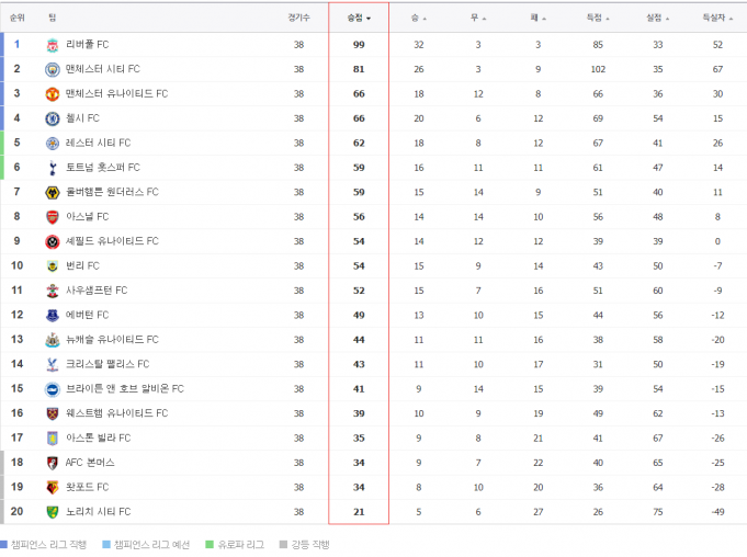 코로나 사태로 인해 3개월간 중단되었던 EPL이 38라운드 경기를 모두 마무리하며 27일 막을 내렸다. 이로써 다음 시즌 챔피언스리그와 유로파리그, 또 챔피언십(2부)으로 강등되는 팀들이 확정됐다.